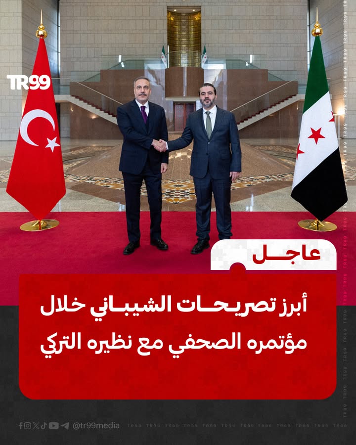🔴وزير الخارجية السوري أسعد الشيباني في مؤتمر صحفي مشترك مع نظيره التركي هاكان فيدان: