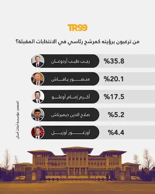 نشرت شركة ASAL للأبحاث والاستشارات نتائج استطلاعها “المرشح الرئاسي”، الذي أجري على مستوى تركيا في يناير 2026. وقد طُرح على المشاركين في الدراسة، التي شملت 2000 شخص تتراوح أعمارهم بين 18 عامًا فأكثر في 26 محافظة، سؤال مفتوح: “من ترغبون في رؤيته مرشحًا رئاسيًا في الانتخابات المقبلة؟”
