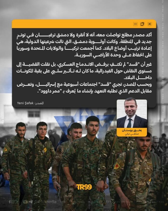 📌التعاون الوثيق بين “قسد” وإسرائيل” يعني تفكيك سوريا، وهو أمر لا يمكن لدمشق ولا لأنقرة القبول به.