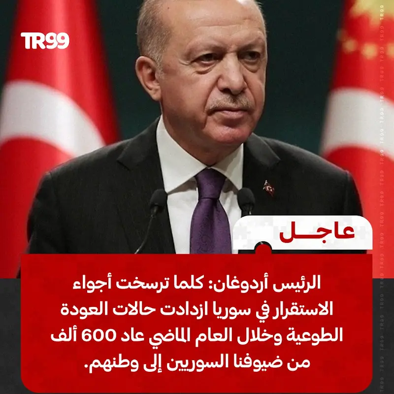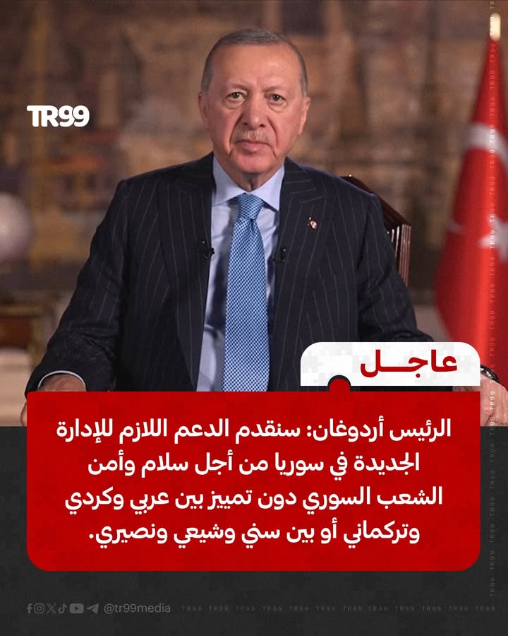 🔴 الرئيس أردوغان يؤكد استمرار دعم أنقرة لدمشق من أجل تحقيق الاستقرار.