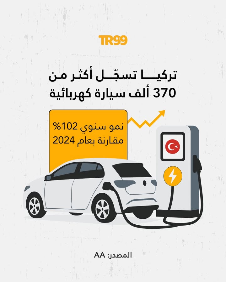 🔸 بلغ عدد السيارات الكهربائية المسجَّلة داخل تركيا 370 ألفًا و591 سيارة حتى نهاية عام 2025، مسجِّلًا نموًا سنويًا بنحو 102% مقارنة بعام 2024.