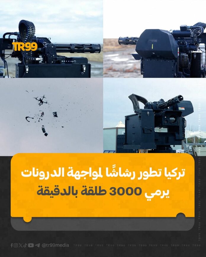 🔸طورت شركة “يوني روبوتيكس” التركية منظومة رشاش لمواجهة المسيرات الصغيرة (درونات)، تتميز بقوة نارية عالية وقدرة إطلاق 3 آلاف طلقة بالدقيقة.