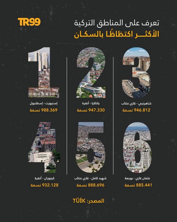 تعرف على المناطق التركية الأكثر اكتظاظًا بالسكان وفق ما حددها معهد الإحصاء التركي