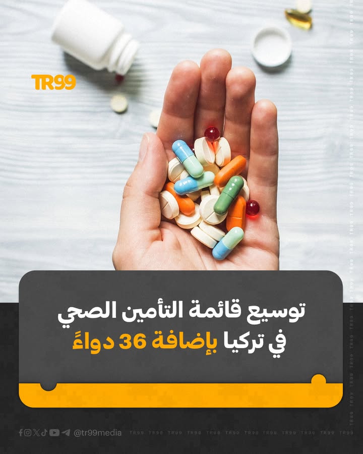 🔸 أعلن وزير الصحة التركي “كمال مميش أوغلو” إدراج 36 دواءً جديدًا ضمن قائمة الأدوية المشمولة بالسداد، وذلك في إطار توسيع إمكانية وصول المواطنين إلى العلاجات.
