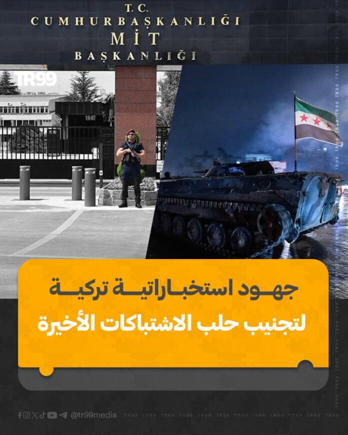 📌أفادت مصادر أمنية تركية بأن جهاز الاستخبارات التركي بذل جهودًا مكثفة لمنع اندلاع اشتباكات في مدينة حلب، والعمل على حل الأزمة عبر المصالحة والحوار، إلا أن تنظيم “قسد” سعى إلى عرقلة هذه الجهود، ومنع التوصل إلى توافق يتيح للمدنيين مغادرة المنطقة بأمان.
