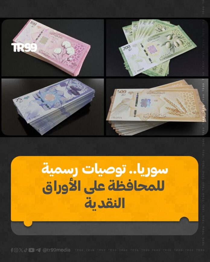 سوريا توصيات رسمية للمحافظة على الأوراق النقدية