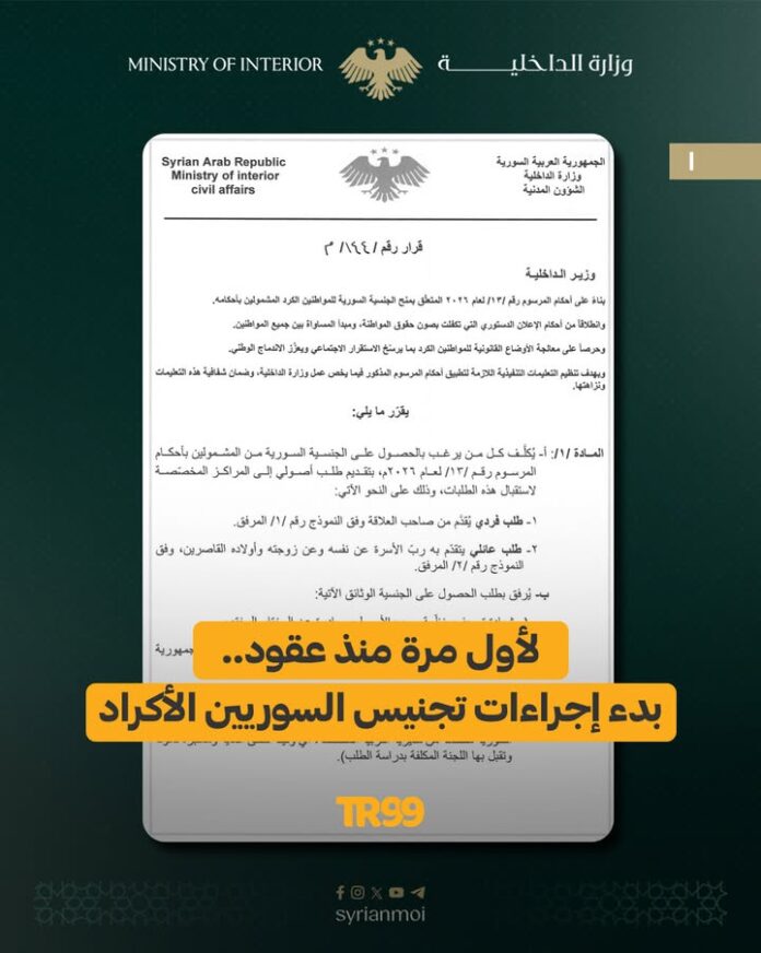 📸 بعد أن حرمهم نظام الأسد منها لعقود.. الحكومة السورية تبدأ إجراءات استقبال طلبات المواطنين الأكراد للحصول على الجنسية بموجب المرسوم الذي أصدره الرئيس أحمد الشرع في يناير/ كانون الثاني الماضي