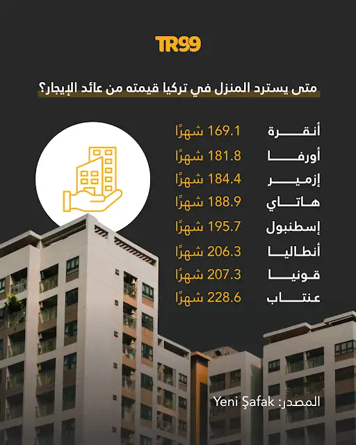 متى يسترد المنزل في تركيا قيمته من عائد الإيجار ؟