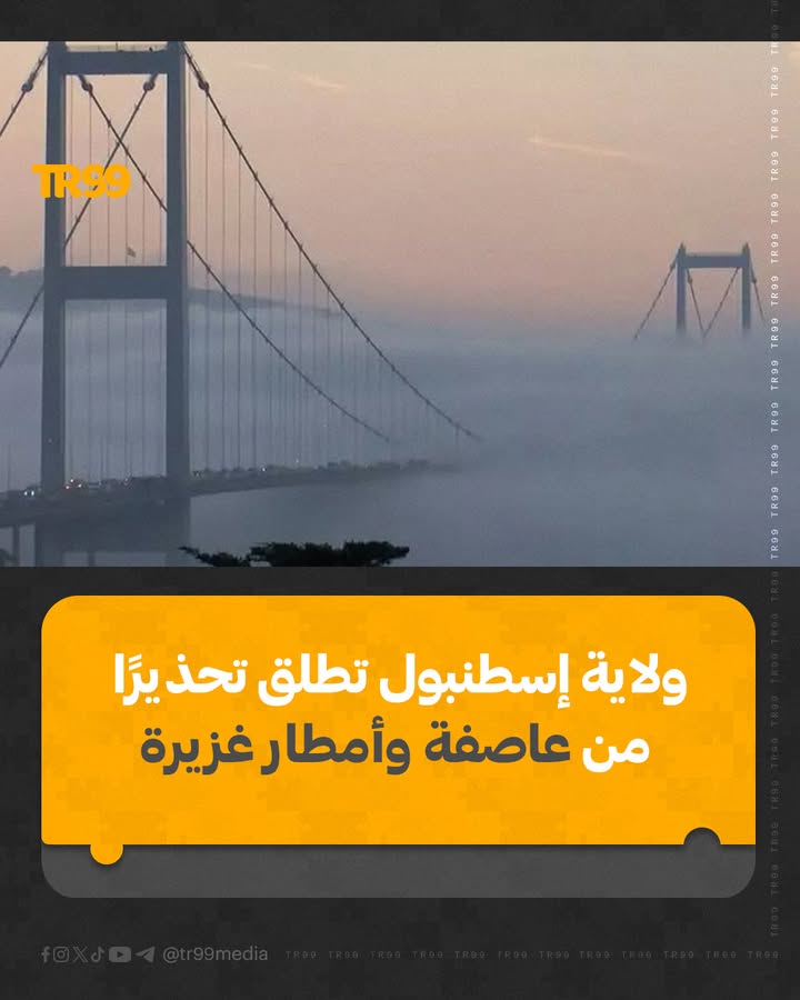 📌حذّرت ولاية إسطنبول من عاصفة وأمطار غزيرة يُتوقع أن تشهدها المدينة اعتبارًا من يوم الأحد ، داعية المواطنين إلى توخي الحيطة والحذر.