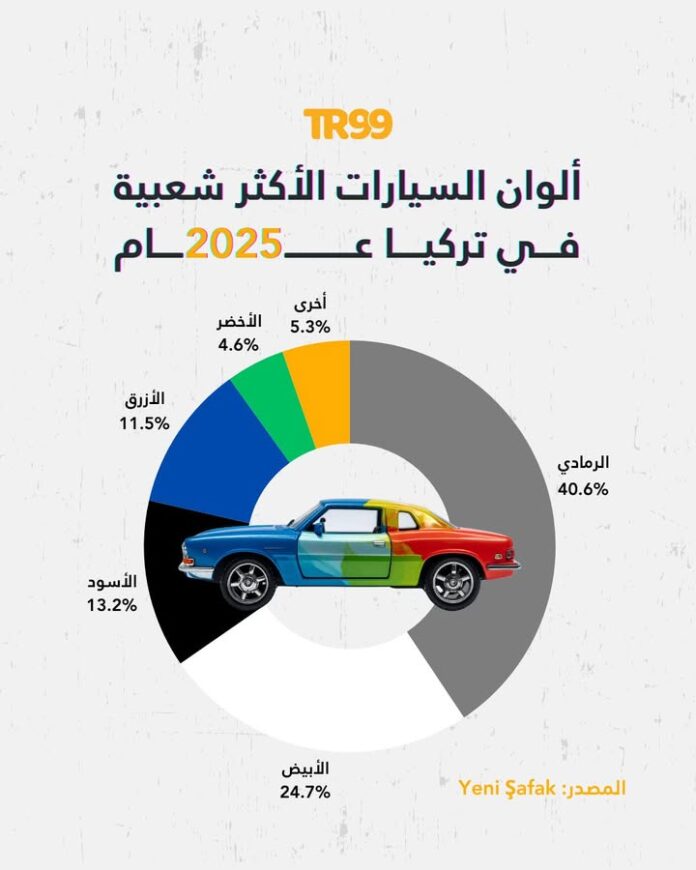 تم تسجيل 2,368,538 مركبة في تركيا عام 2025 وفق بيانات معهد الإحصاء التركي (TÜİK) فما اللون الأكثر تفضيلًا للسيارات؟
