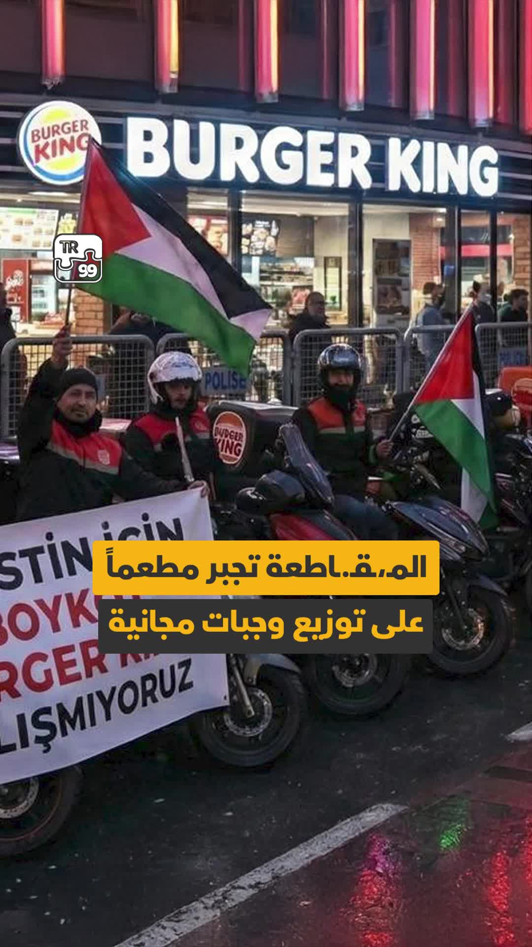🎥 إسطنبول.. وقفة احتجاجية متواصلة منذ 110 أيام تدفع فرع إحدى المطاعم العالمية لتوزيع وجبات مجانية في محاولة لكسر تبعات المـ،ـقاطَـ.ـعة وإظهار استمرار توافد الزبائن إلى المتجر.