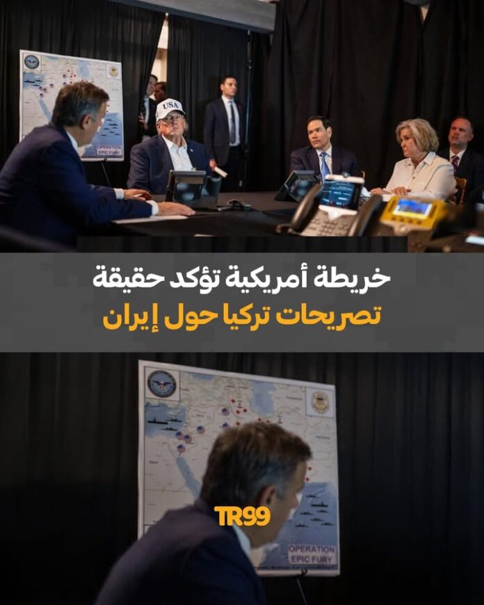 📸 خريطة داخل غرفة إدارة دونالد ترامب للعمليات العسكرية ضد إيران تُظهر عدم استخدام أي قواعد عسكرية على الأراضي التركية في الضربات الأمريكية الأخيرة في مشهد يعزز تصريحات مسؤولين أتراك بأن أنقرة لم تسمح باستخدام أراضيها لتوجيه ضربات ضد طهران