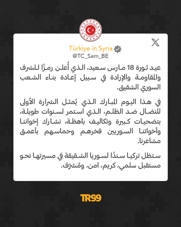 ✍️السفارة التركية في دمشق تشارك السوريين احتفالهم بذكرى انطلاق الثورة.