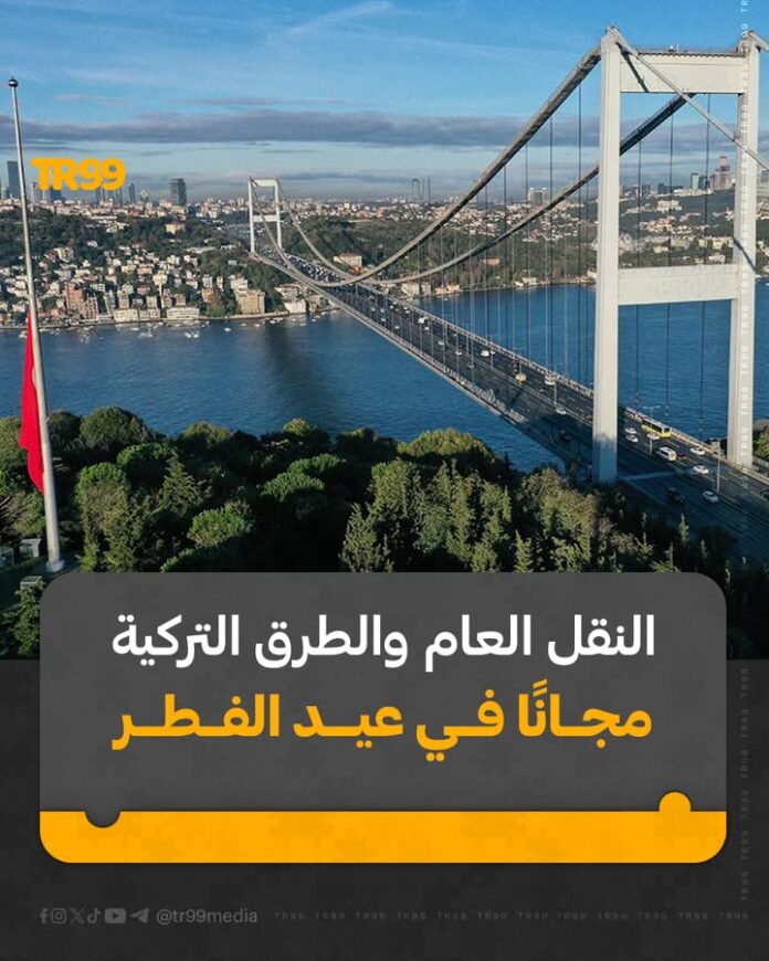 📌 وبحسب القرار، ستكون حركة العبور مجانية على الطرق السريعة والجسور التابعة للدولة، بما في ذلك جسري 15 تموز (شهداء 15 يوليو) والسلطان محمد الفاتح، ابتداءً من الساعة 00:00 ليلًا مع بداية العطلة، وحتى نهاية يوم الأحد 22 مارس.