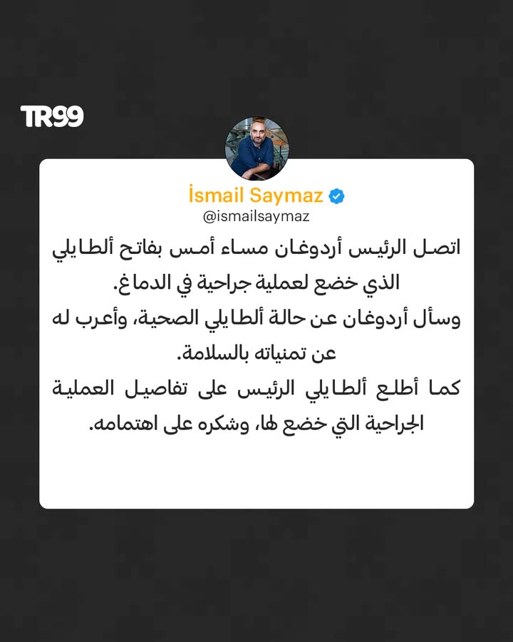 ✍️رغم تباين الرؤى.. الرئيس أردوغان يجسد روح المسؤولية باطمئنانه على صحة الصحفي المعارض فاتح ألطايلي، بحسب الصحفي إسماعيل صايماز.