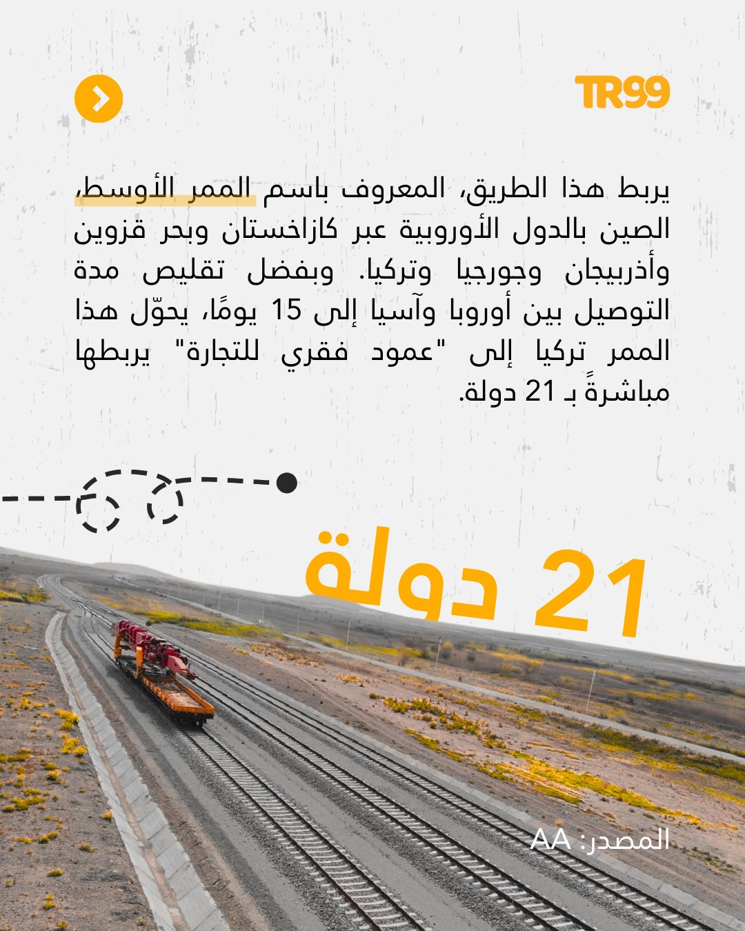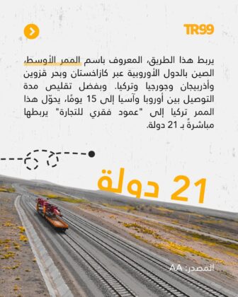 📌 يربط هذا الطريق، المعروف باسم الممر الأوسط، الصين بالدول الأوروبية عبر كازاخستان وبحر قزوين وأذربيجان وجورجيا وتركيا. وبفضل تقليص مدة التوصيل بين أوروبا وآسيا إلى 15 يومًا، يحوّل هذا الممر تركيا إلى “عمود فقري للتجارة” يربطها مباشرةً بـ 21 دولة.