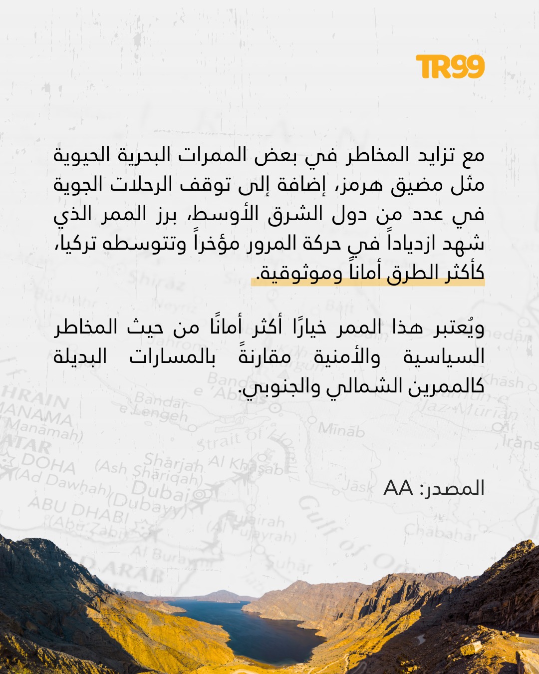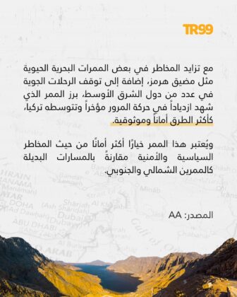 📌 مع تزايد المخاطر في بعض الممرات البحرية الحيوية مثل مضيق هرمز، إضافة إلى توقف الرحلات الجوية في عدد من دول الشرق الأوسط، برز الممر الذي شهد ازدياداً في حركة المرور مؤخراً وتتوسطه تركيا، كأكثر الطرق أماناً وموثوقية. ومع التقدم السريع لمشروع طريق التنمية، يُتوقع أن يصبح أحد الطرق الرئيسية للنقل والتجارة.